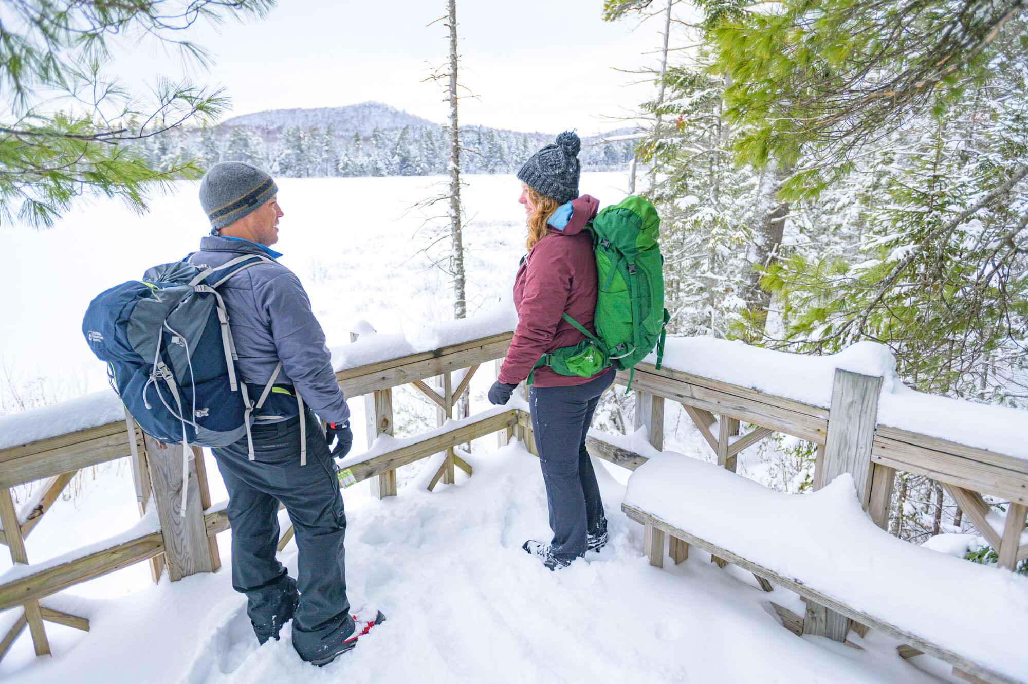 Want to spend some time in the snowglobe-worthy scenery of the Adirondacks but don't really feel like schussing down a mountain? Try the trails at the Paul Smith's College Visitor Interpretive Center, where snowshoeing and cross-country skiing trails wind through a variety of natural habitats. 40k of trails vary in length and difficulty, so this is the perfect spot for everything from a full day to an hour-long walk.